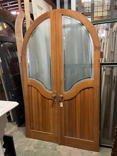 thumbnail_IMG_6717 Published 3 October 2025 at 481 × 640 in Tiles View #2 of large pair of arched internal timber doors with etched glass, W 1410 x H 2355 x D 32mm (D288) $485