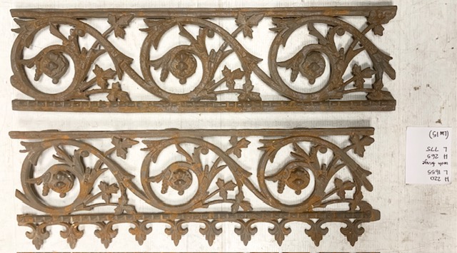 Original Victorian cast iron frieze, piece w/o fringe 220mm H x 165mm L, piece with fringe 265mm H x 775mm L (LW15)
