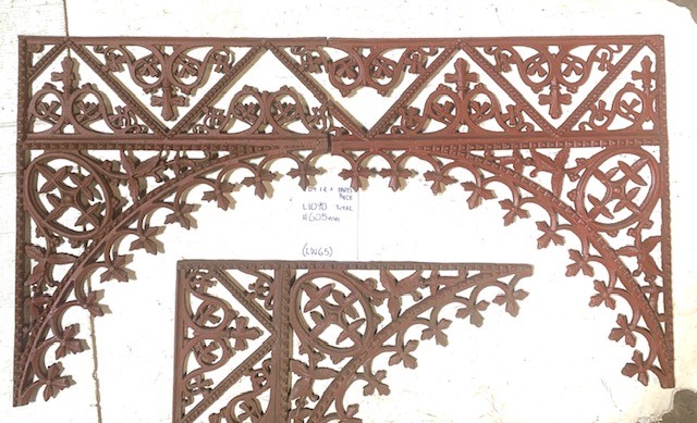Original Victorian cast iron verandah corners, 1x left hand, 1x right hand and 1x for spare parts, 1090 L x 605 H (LW65)