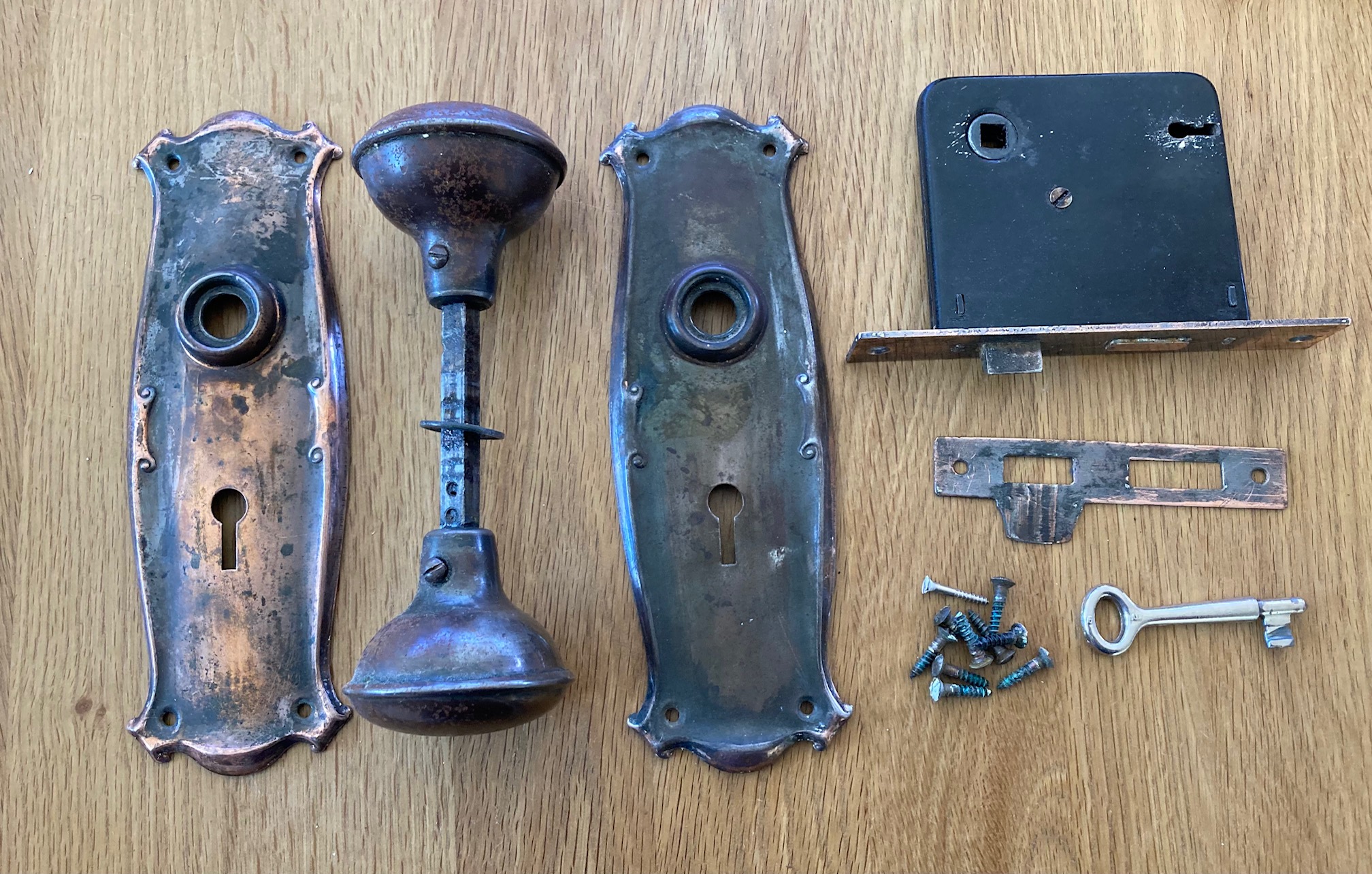 SOLD please see website for more options Published 17 September 2023 at 2016 × 1284 in SOLD please see website for more options SOLD Original complete door set in Florentine bronze, 2 handles, 2 plates, mortise lock, keeper, keys and screws (H84) $65 Original complete door set in Florentine bronze, 2 handles, 2 plates, mortise lock, keeper, keys and screws (H84) $65