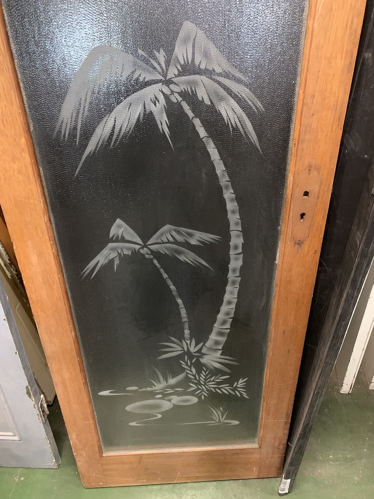 SOLD please see website for more options Published 23 August 2021 at 756 × 1008 in Doors, windows & walls SOLD Detail of single etched ripple glass door with palm trees on a beach W770 x H2035mm, $345 Single etched ripple glass door with palm trees on a beach W770 x H2035mm, $345
