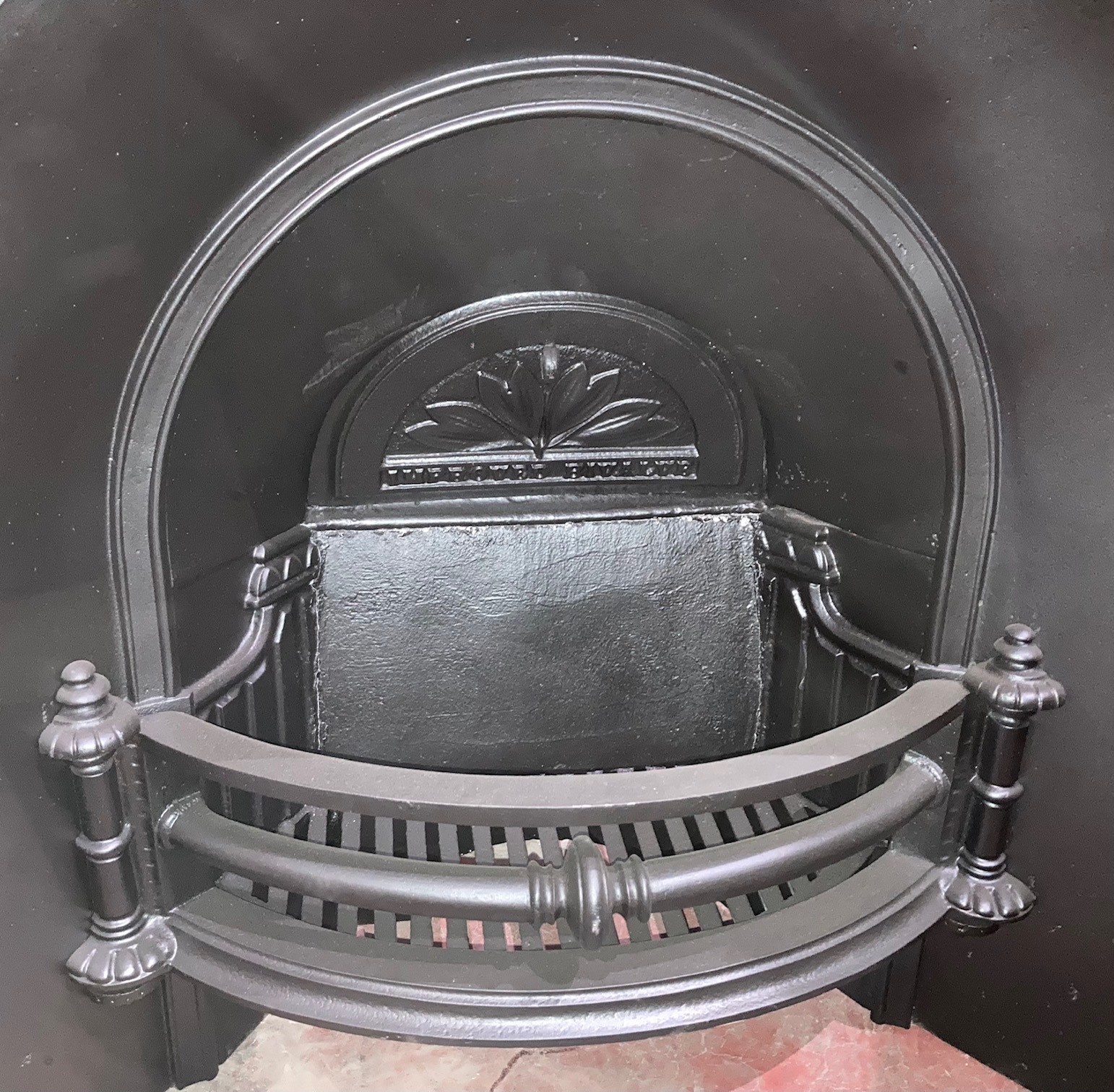 SOLD Detail of original 1880s Victorian Wright’s bivalve big basket fire insert, fully restored in excellent condition, as new after 140 years, 970 x970, basket 45cm wide (F30) $950