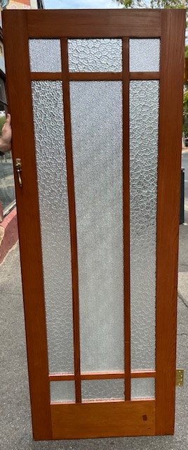 Detail of room dividing internal French doors with 9 lovely textured glass panels, circa 1920s, in beautiful condition, matched (D330), H 2020 x W 1480 x D 35mm (D331) $660 set