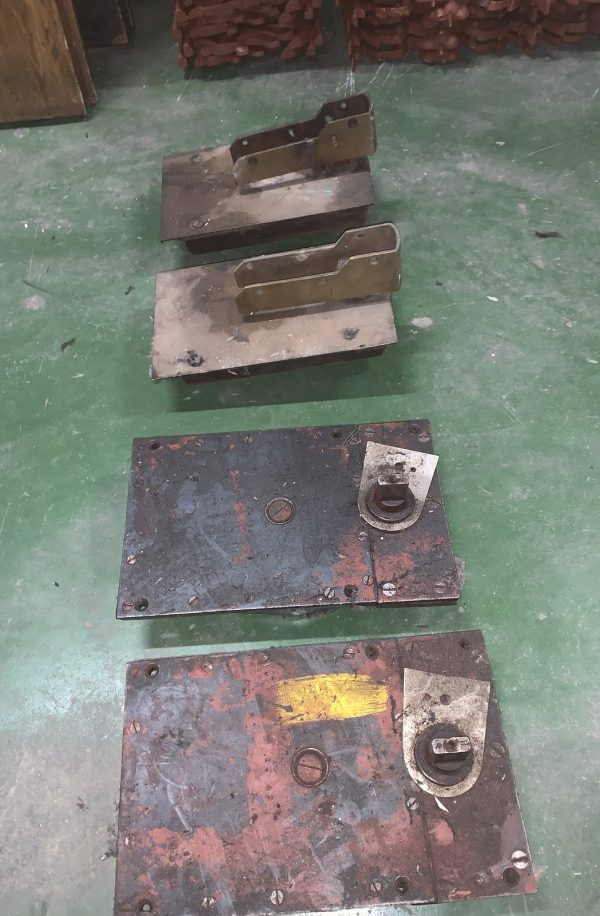 Large heavy steel swing door floor hinge / pivot. 27 x 17cm (2 available). 24 x 17cm (2 available) $150 each