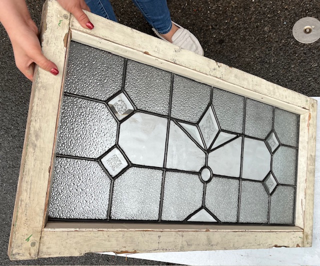 Geometric leadlight window with textured glass frame H 465 x W 870mm, glass H 350 x W 760mm (LL331 FOZI) $365