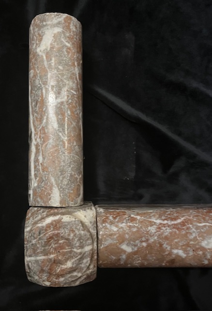Detail of rouge marble fireplace fender, internal dimensions W 1215 x D 240mm, external dimensions W 1385 x D 330mm (F414) $485