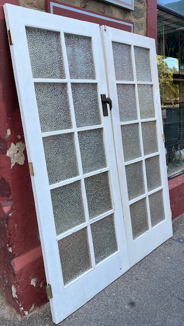 View #2 of textured glass and while painted timber internal double doors, no breaks in glass, H 2015 x W 1635mm (D335) $735 set
