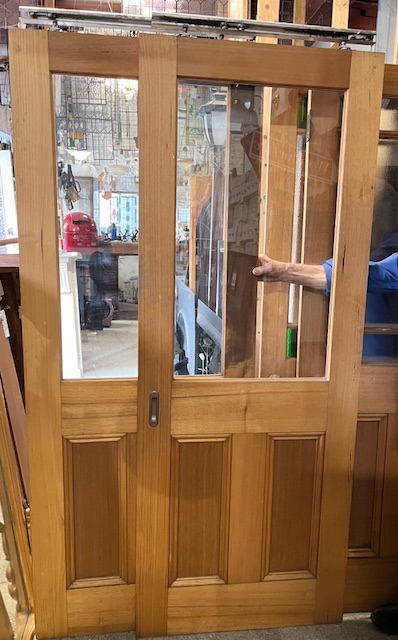 Internal clear glass timber sliding door pair on tracks, W 1532 x H 2015 x D 35mm (D341) $545