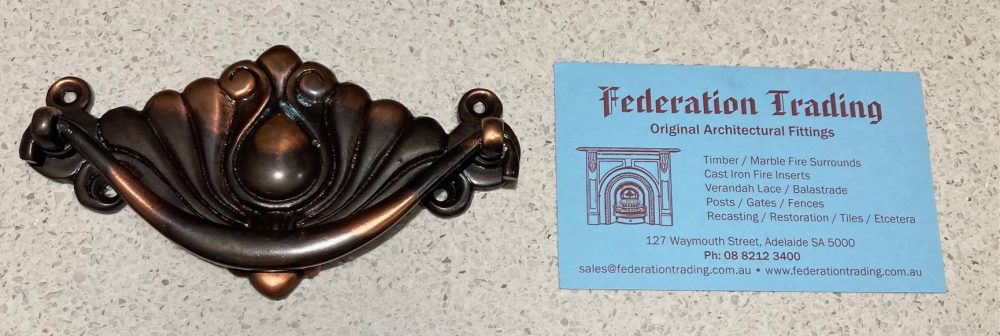 Unused Superior brand cabinet handles, solid brass, Florentine brozne / antique copper finish, W 115 x H 60mm, 6 available (H487) $12 each