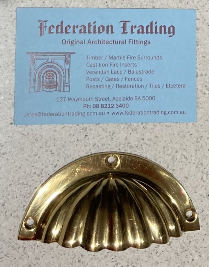 SOLD see website for more options Published 14 June 2025 at 700 × 894 in SOLD see website for more options SOLD Polished solid brass unused fluted drawer pulls, 90 W x 20 projection, 5 available (H495) $7 each SOLD Polished solid brass unused fluted drawer pulls, 90 W x 20 projection, 5 available (H495) $7 each