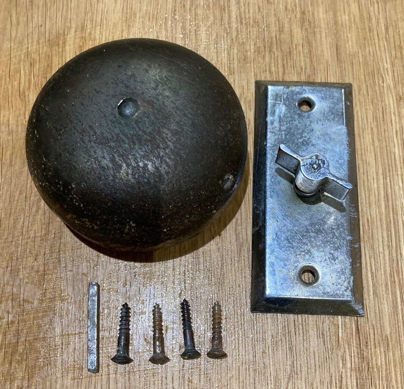 SOLD see website for more options Published 24 April 2024 at 1337 × 1288 in SOLD see website for more options SOLD Original chrome twist bell/ turn bell in working order, front plate 10cm H (H135) $45 Original chrome twist bell/ turn bell in working order, front plate 10cm H (H135) $45