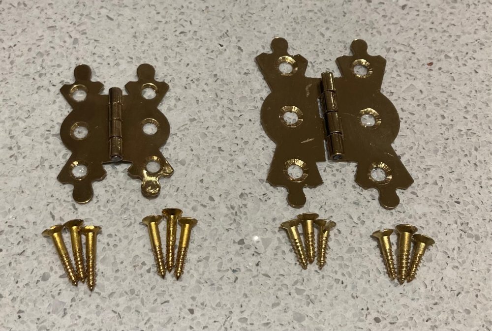 Butterfly brass hinges, small 40 H, 2 available, large 55 H, 4 available (H543) $5 each Published 26 June 2025 at 1000 × 673 in Butterfly brass hinges, small 40 H, 2 available, large 55 H, 4 available (H543) $5 each Butterfly brass hinges, small 40 H, 2 available, large 55 H, 4 available (H543) $5 each Butterfly brass hinges, small 40 H, 2 available, large 55 H, 4 available (H543) $5 each