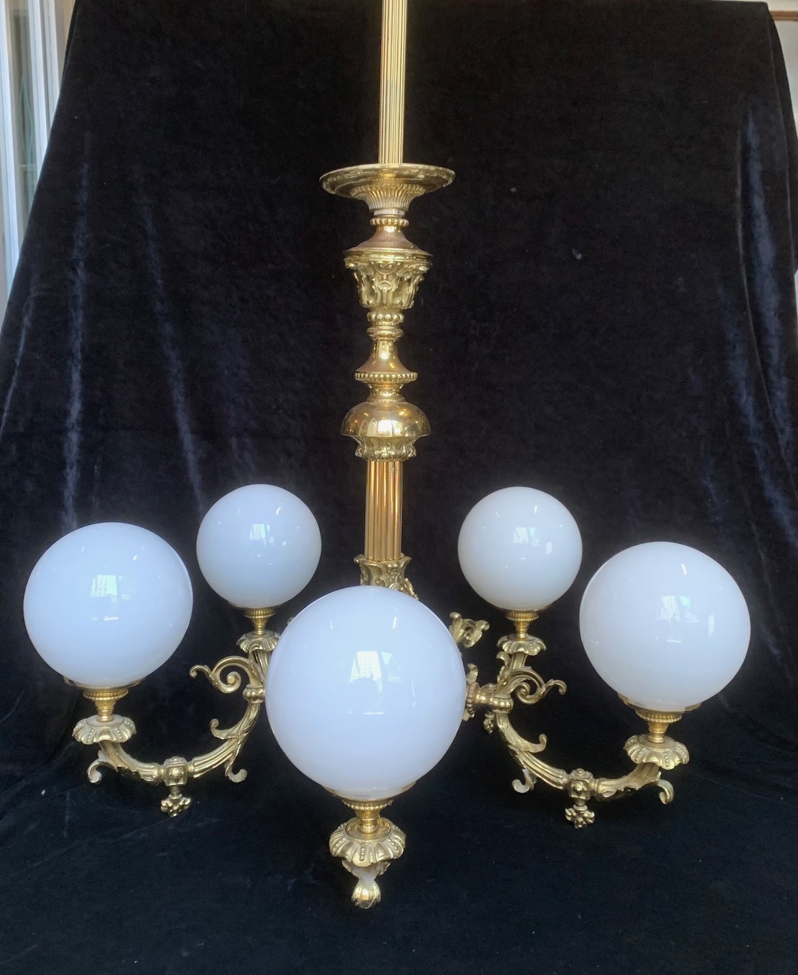SOLD please see website for more options Published 8 October 2023 at 1160 × 1418 in SOLD please see website for more options SOLD Ornate 5 arm brass very substantial pendant light with opal ball shades, 108cm drop height, 67cm diam (L41) $1200 Ornate 5 arm brass very substantial pendant light with opal ball shades, 108cm drop height, 67cm diam (L41) $1200