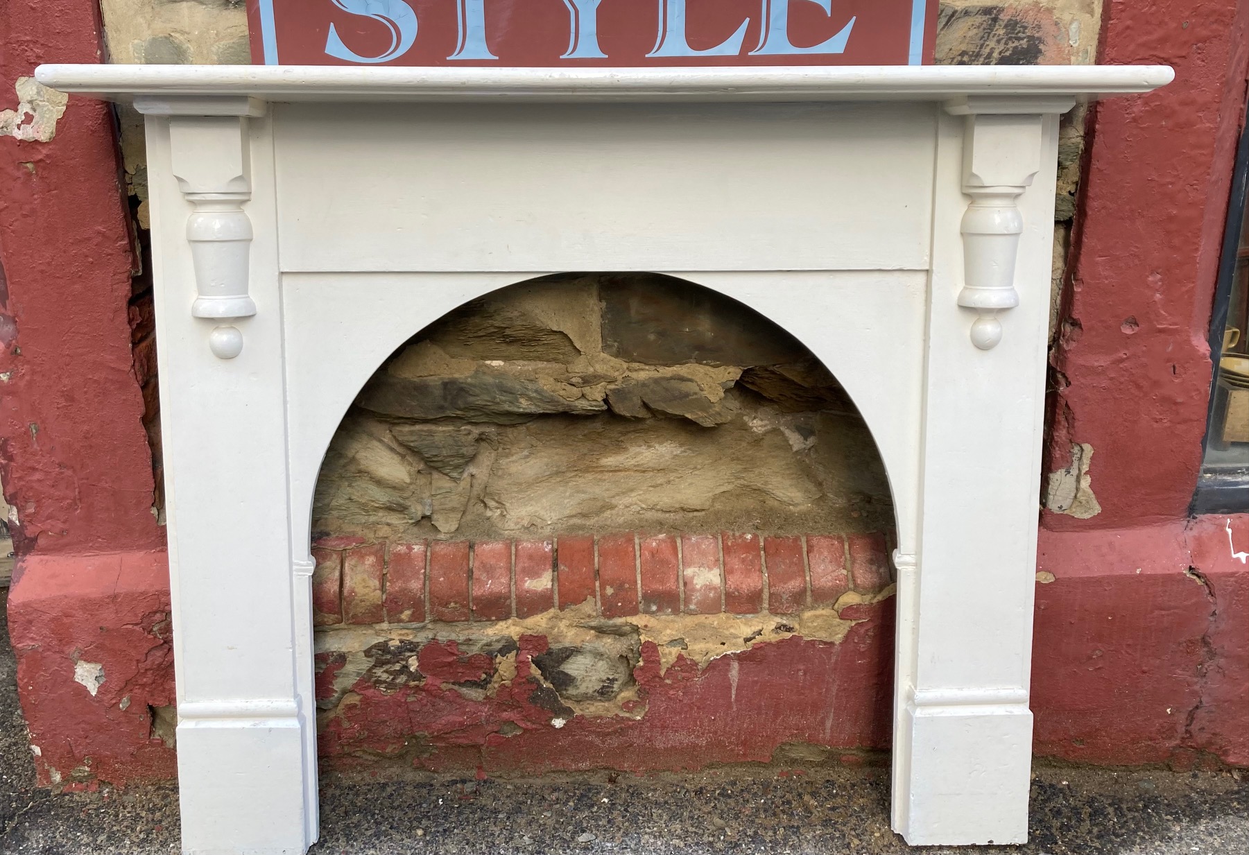 SOLD see website for more options Published 1 June 2024 at 1801 × 1233 in SOLD see website for more options SOLD Very clean lovely little white painted, arched timber mantel top shelf 1470 W x 215 D, height 1180, opening 900 H x 910 W (M105) $375 Very clean white painted, arched timber mantel top shelf 1470 W x 215 D, height 1180, opening 900 H x 910 W (M105) $375