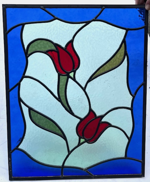 SOLD see website for more options Published 31 August 2025 at 528 × 640 in SOLD see website for more options SOLD Climbing rose leadlight in blue, aqua, red and green, W 400 x H 500 (LL264) $220 SOLD Climbing rose leadlight in blue, aqua, red and green, W 400 x H 500 (LL264) $220