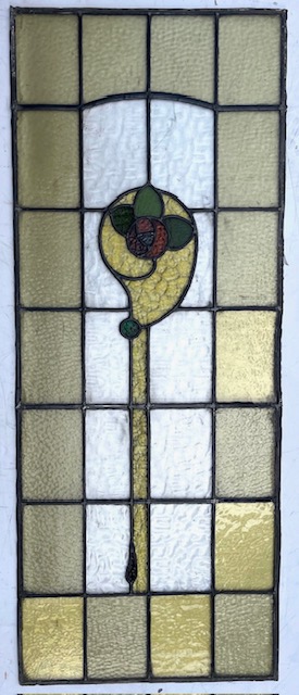 View #2 of extra large yellow, cream, green and pink rose restored leadlight, H 1215 x W 480 (LL263) $645