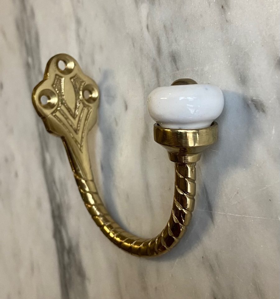 Porcelain and brass coat hook approx 150 H (H479) $15 Published 11 June 2025 at 900 × 961 in Porcelain and brass coat hook approx 150 H (H479) $15 Porcelain and brass coat hook approx 150 H (H479) $15 Porcelain and brass coat hook approx 150 H (H479) $15