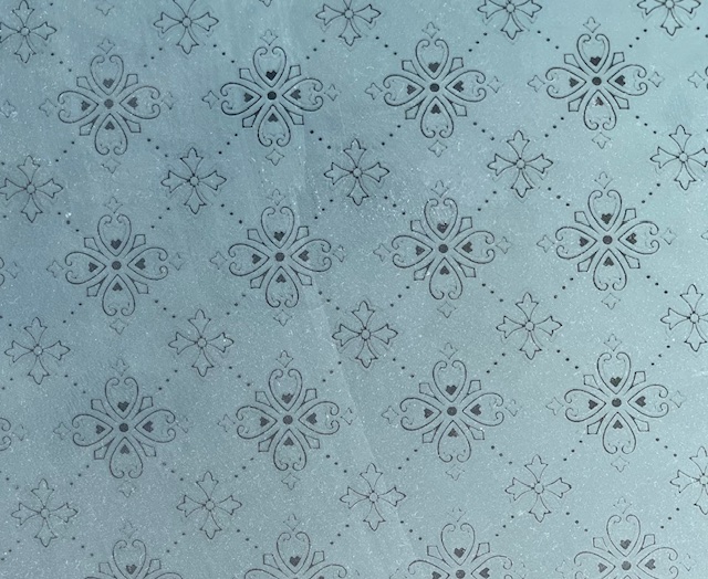 IMG_8391 Published 14 December 2025 at 640 × 524 in IMG_8391 Detail of arched and etched glass panel, some chips to edge, W 1380 x H 550mm (LL) $40