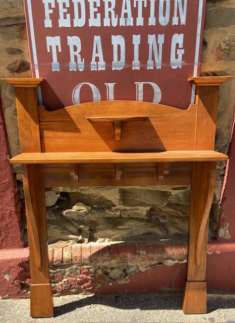 Original bungalow polished timber mantelpiece, circa 1915, height 1597mm, outer leg 1220mm, opening W 970 x H 950mm (M264) $565