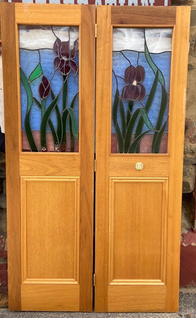 Set of 4 leadlight bifold doors, pink, blue and green iris design leadlight panels, H 1985 x W 2272mm (D329) $880 set of 4.