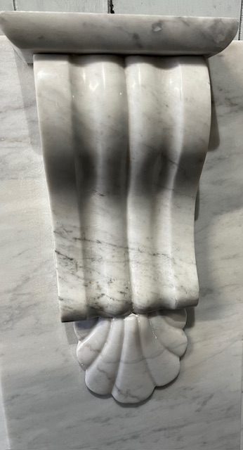 Scroll detail of grand Victorian marble mantelpiece #2 with large Victorian scrolls, original mantel fully restored by Feds, top shelf W 1785 x D 310mm, height 1200mm, each leg is 310mm wide (M276) $4500