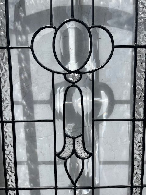 More detail of original leadlight full panel front door, clear, orange and textured glass, H 2065 x W 850 x D 40mm (D678) $985