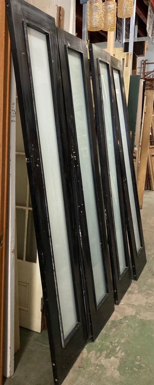 Black MDF bifold doors with opaque glass, 2 pairs available, all doors 2025 H, 1x 450mm W, 1x 455mm W, 2x 440mm W, sold in pairs (D226) $150 per pair