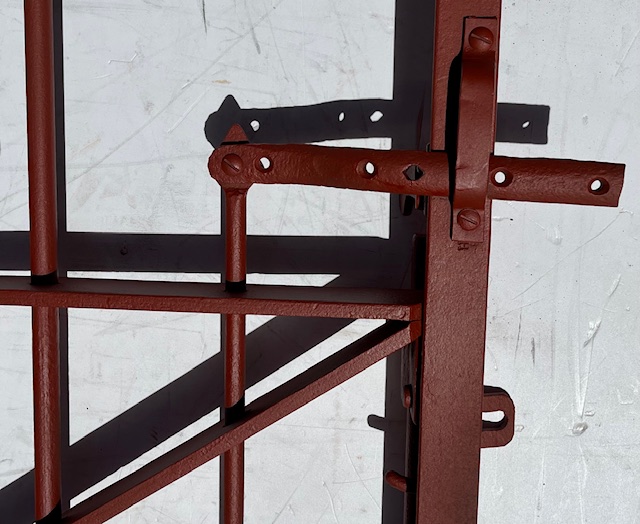 Detail of Victorian original black smithed pedestrian gate with spears, fully restored by Feds, with latch and drop bolt, primed and ready to paint, H 1290 x W 750mm (G64) $645