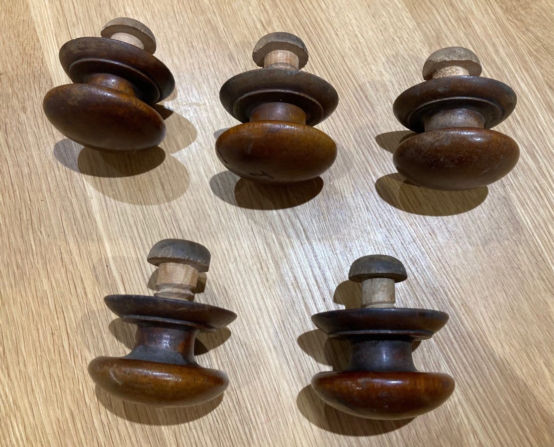 View #2 of polished timber cupboard handles, five available, 6cm diam (H20) $40 set of five