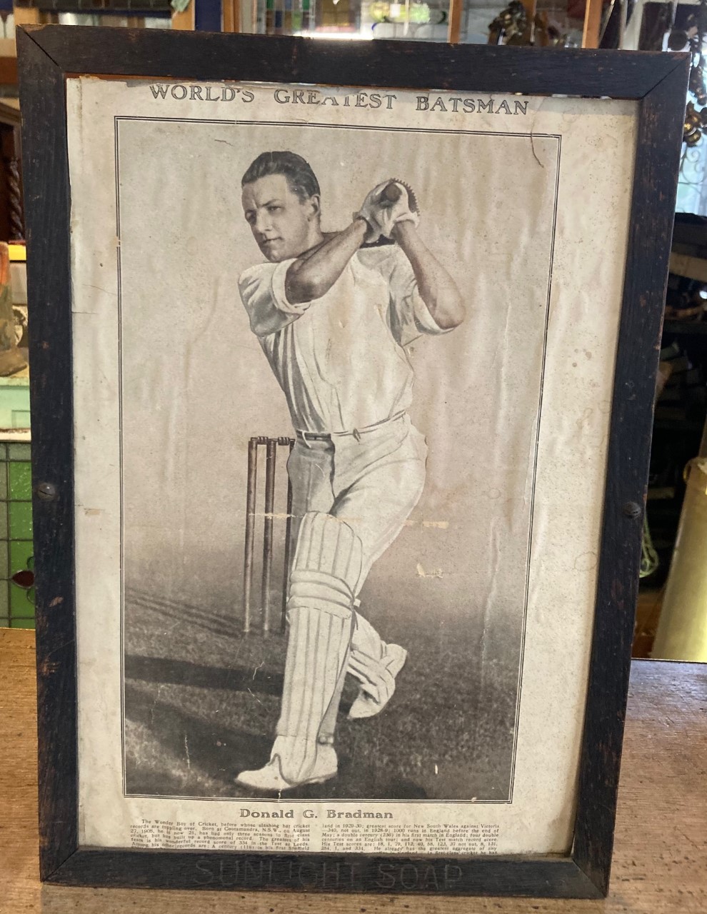 Published 3 December 2022 at 990 × 1280 in SOLD Original and rustic Sunlight Soap from with Don Bradman print 30cm x 43cm $15 Original and rustic Sunlight Soap from with Don Bradman print 30cm x 43cm $15