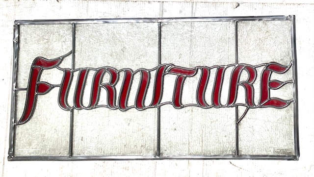 Ex shop front lead light panel ‘furniture’ red and clear glass, 740 x 360mm (Fozi LL74) $220